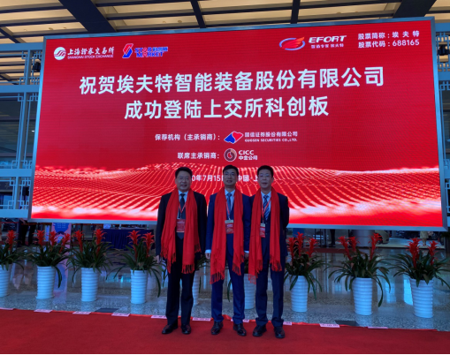 7月15日上午,埃夫特智能装备股份有限公司在上海证券交易所敲锣上市,公司A股股票于今日起在科创板正式上市交易,成为市建投公司第一家控股的上市公司。芜湖市副市长汤劲松、安徽省经信厅、省科技厅、省金融局、省证监局、芜湖市金融局、市国资委、市科技局、市发改委、市建投公司等单位相关领导出席上市仪式。