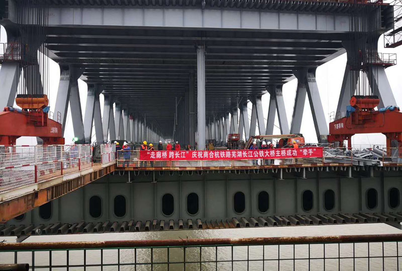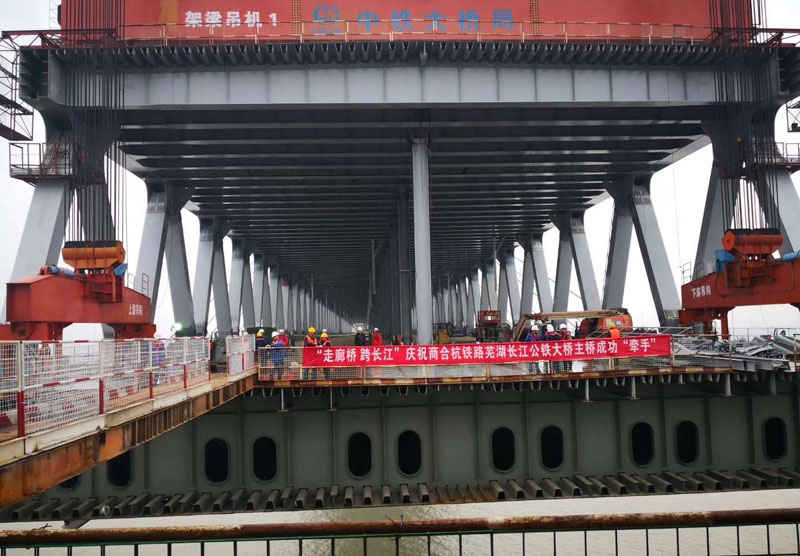 2019年3月28日,商合杭铁路芜湖长江公铁大桥南北两岸在空中成功牵手。