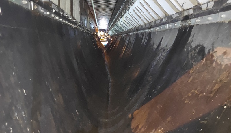 芜湖长江三桥主桥0#、5#墩处采用最大伸缩量为1200mm的梳齿形伸缩缝,齿间距约50mm,通过橡胶止水带收集雨水后排至两侧雨水斗进入雨水系统。自三桥通车以来,车轮及雨水裹挟泥沙由梳齿间隙进入伸缩缝,止水带内存有不少泥沙和杂物。随着时间的推移,止水带内积沙积泥载荷增大,将会对正下方高铁运行产生威胁。为及时消除安全隐患,大桥公司路产安全部养护人员组织外协单位多次前往现场确定清理方案及安全防护措施,并在公司领导带领下及时对接铁路芜湖工务段,申请高铁运行天窗期开展专门清理工作。