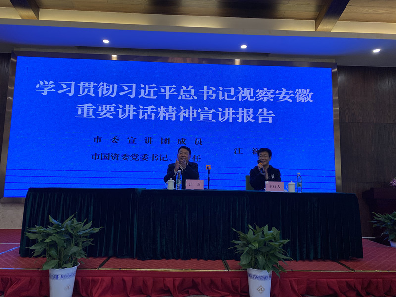 活动第二部分,公司邀请了市委宣讲团成员、市国资委党委书记、主任江澜同志给公司全体员工作了《学习贯彻习近平总书记视察安徽重要讲话精神》的宣讲。江主任对习总书记视察安徽重要讲话精神作了深刻的阐述,并结合实际对我公司为芜湖市经济、产业发展所作贡献、取得成绩给予高度认可,进一步激发了公司全体员工干事创业的激情。
