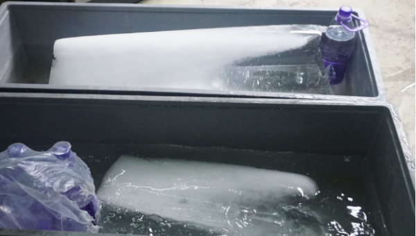 为车间送“清凉”:公司党支部、安委会协同工会每天在生产车间不同区域放置冰块以降低温度,为一线员工送去丝丝清凉。